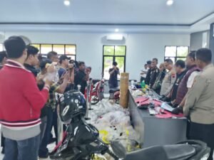 Hal tersebut disampaikan Kapolres Pekalongan AKBP Rachmad C. Yusuf, S.I.K., M.Si saat konferensi pers di gedung aula Setia, Selasa (31/03/2026). Ia menyampaikan, bahwa jajaran Sat Reskrim Polres Pekalongan telah menangkap dua pelaku curanmor yang terjadi di Desa Kulu, Kecamatan Karanganyar.