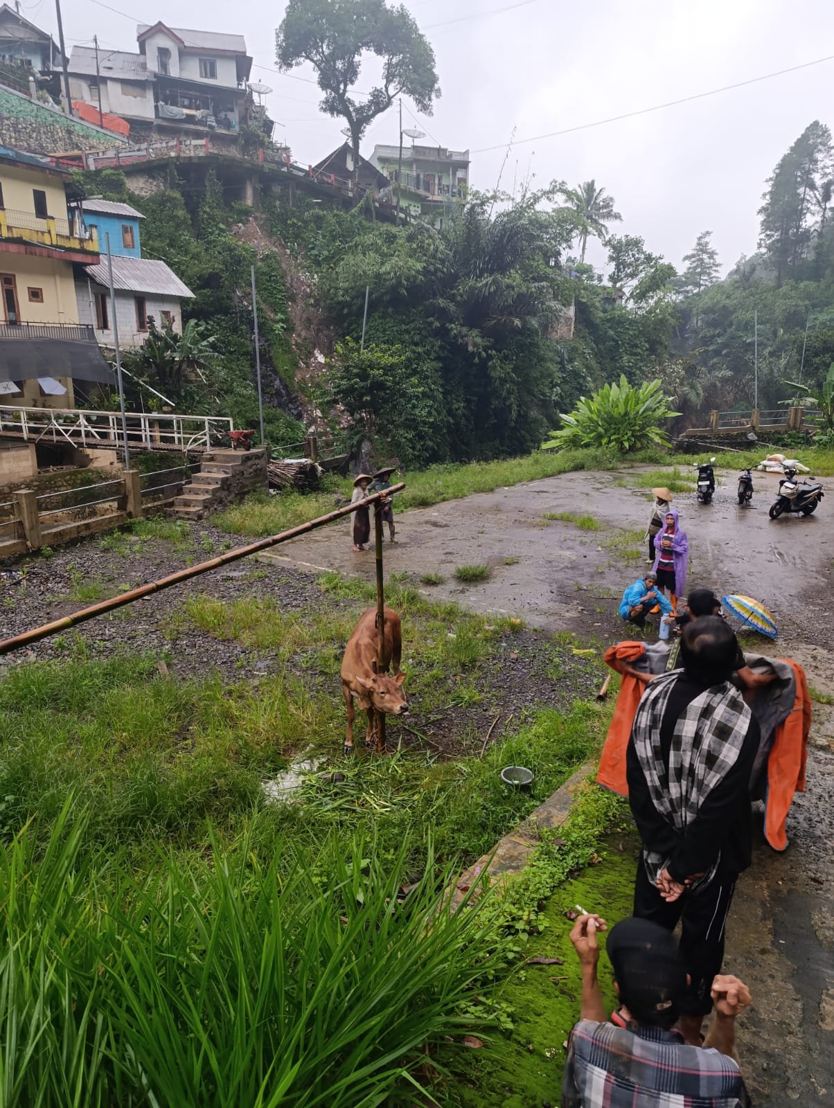 Bencana ini turut menghantam sektor peternakan warga. Tiga unit kandang sapi milik Bapak Darno, Bapak Radib, dan Bapak Duryani dilaporkan hancur tersapu longsoran tanah. Sebanyak lima ekor sapi milik ketiganya ikut terseret material longsor.
